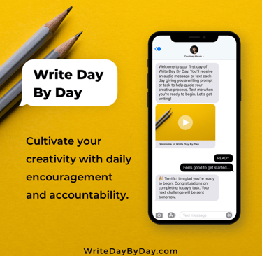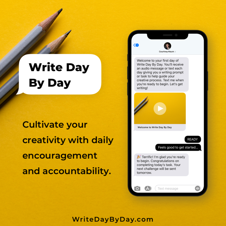 WRITE DAY BY DAY - is a 30 day SMS program from author and writing coach Courtney Maum that helps writers stay accountable and create content daily.